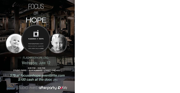 PROmotion PR Group will host the event "Focus on Hope" - a benefit cocktail party. Food, drinks and raffle prizes will be included in order to raise money for Flashes of Hope.
